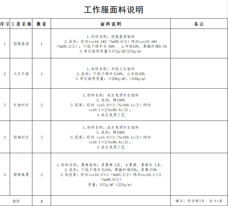 4.采購(gòu)規(guī)模及內(nèi)容概述:眉山市東岸建設(shè)有限公司服裝采購(gòu)共計(jì)61套(暫定)。