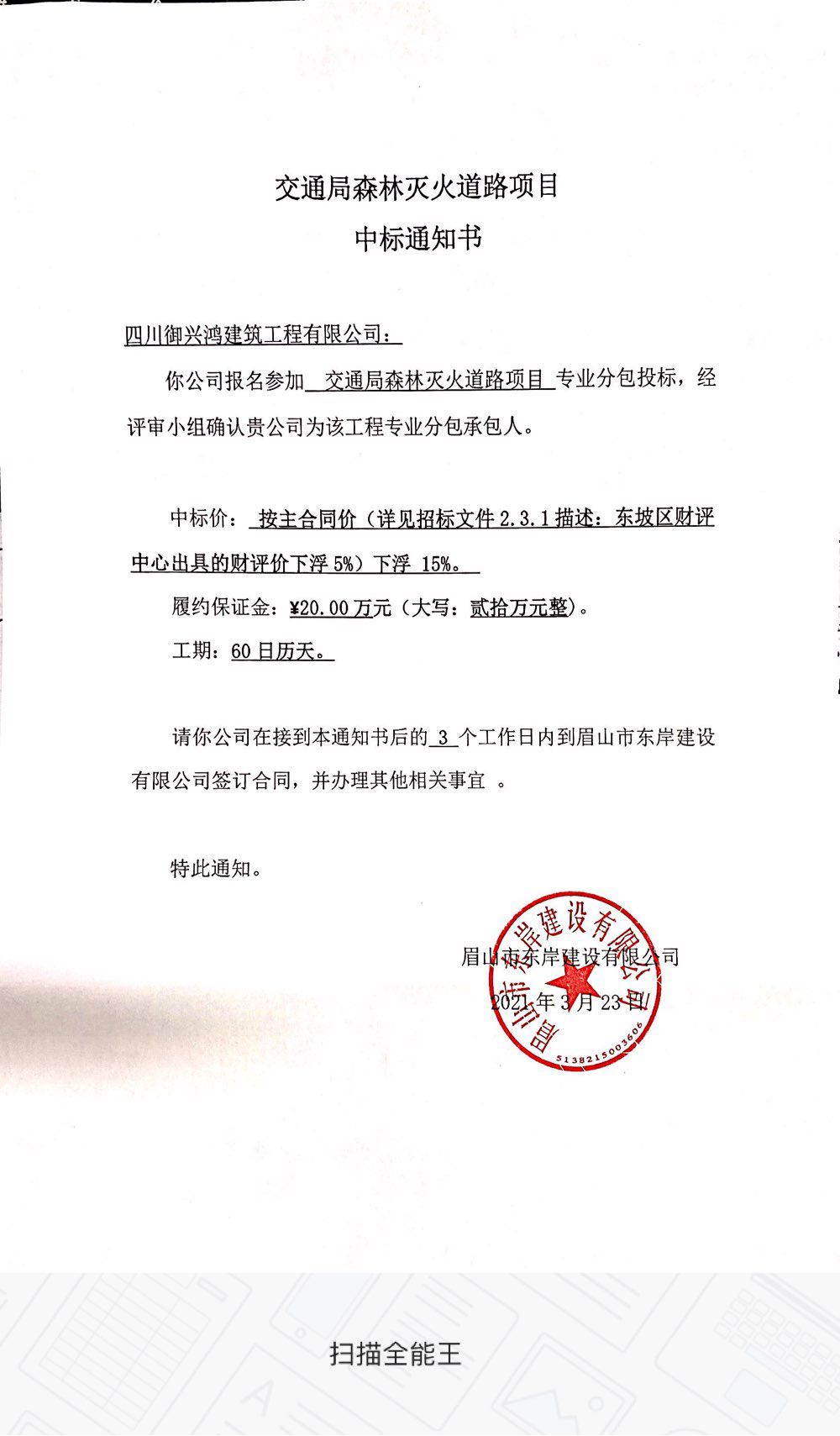 交通局森林滅火道路項(xiàng)目專業(yè)分包中標(biāo)公示